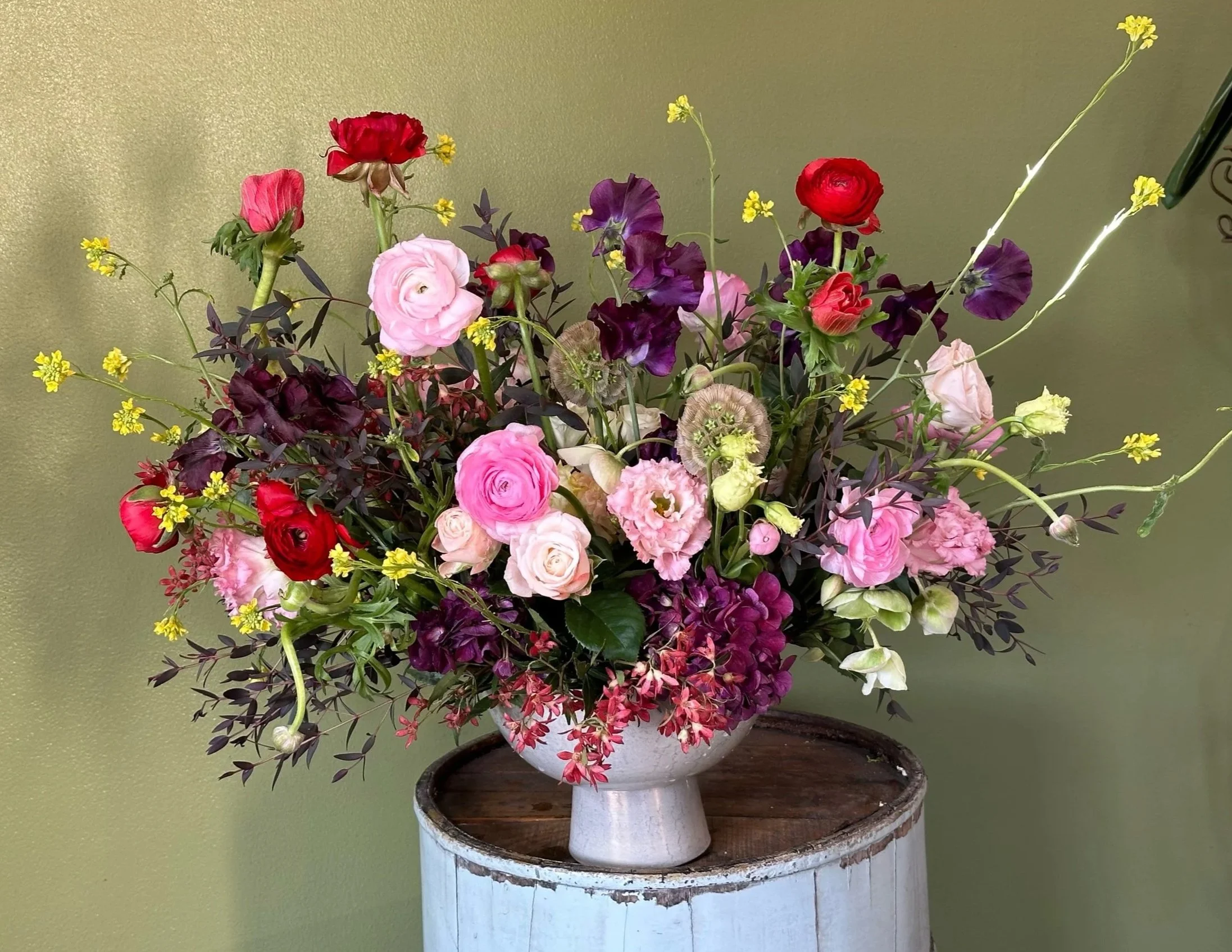 A shimmery, glittery gal. She brings the spice of life to lift people’s spirits, send your appreciation, or wish those a happy birthday. Glimmer features Nerine, Anthurium, and ranunculus for your one-of-a-kind special gift.